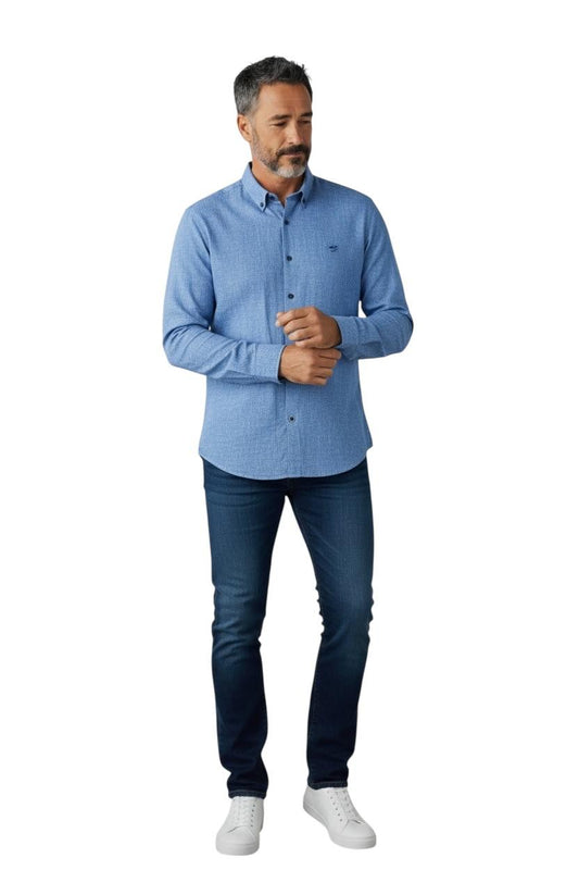Dario Beltran Camisa Manga Larga Amule Azul Medio