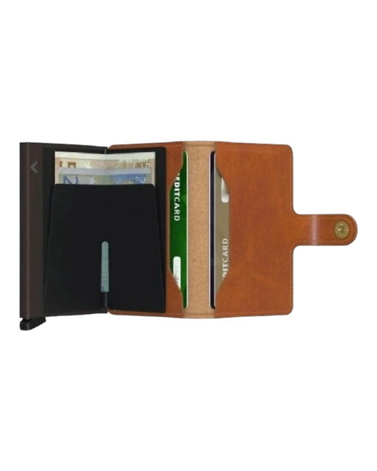 Tarjetero Automatico de Aluminio y Piel Camel