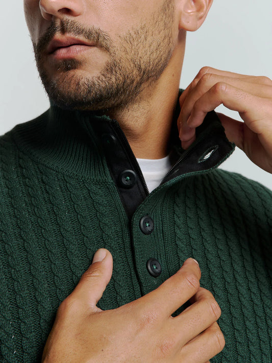 NXS Pullover Cuello Con Media Cremallera y boton No Excess Dark Green