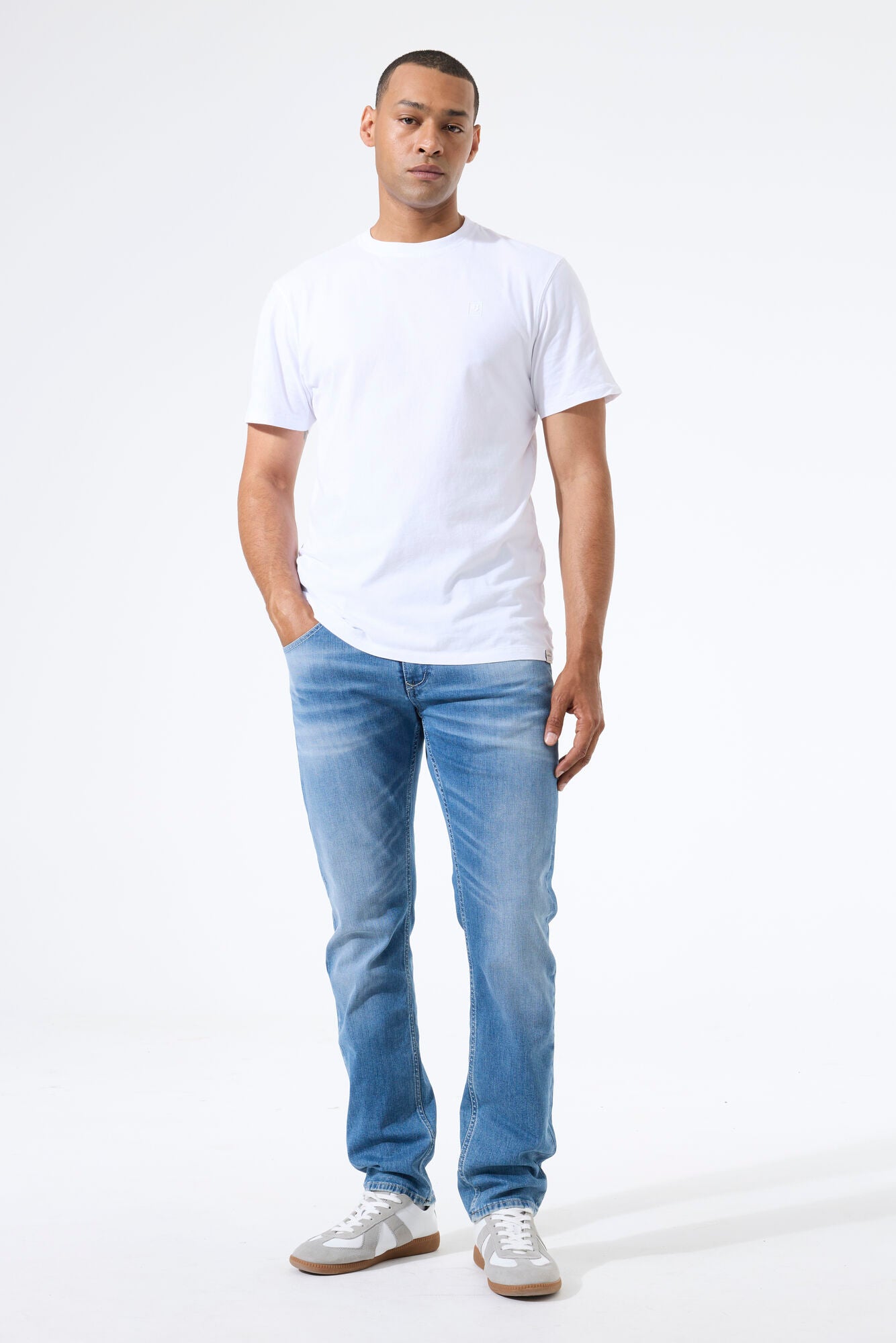 El pantalón vaquero Garcia Jeans Russo en color Light Used combina un clásico con corte de cintura regular y pierna recta para un ajuste cómodo y atemporal. Con cinco bolsillos funcionales y cierre de botón y cremallera, ofrece practicidad y estilo. Su diseño incorpora materiales reutilizados, fomentando una economía circular, y ha sido tratado con una técnica de lavado sostenible que reduce el impacto ambiental sin comprometer la calidad. Ideal para quienes buscan moda responsable y duradera.