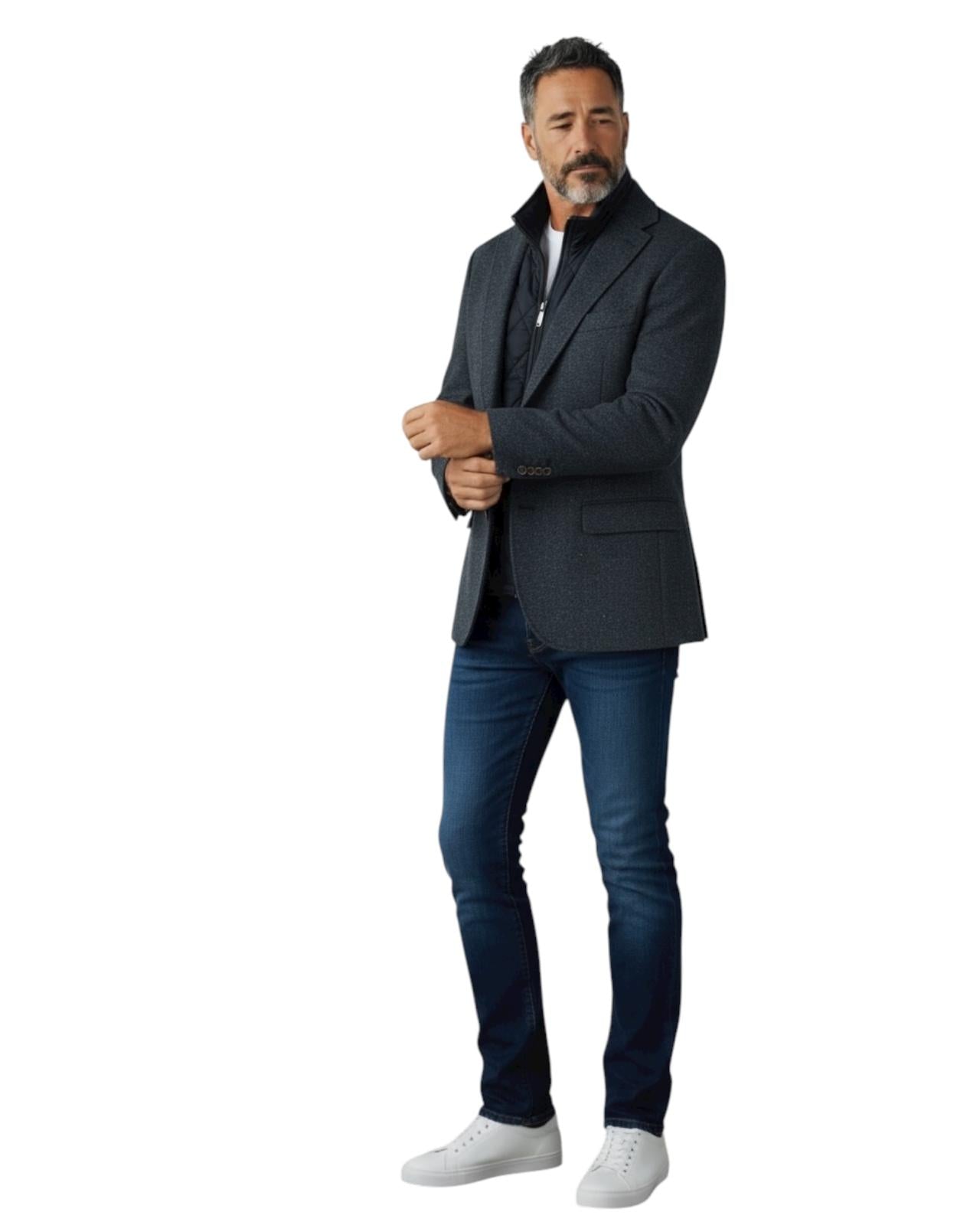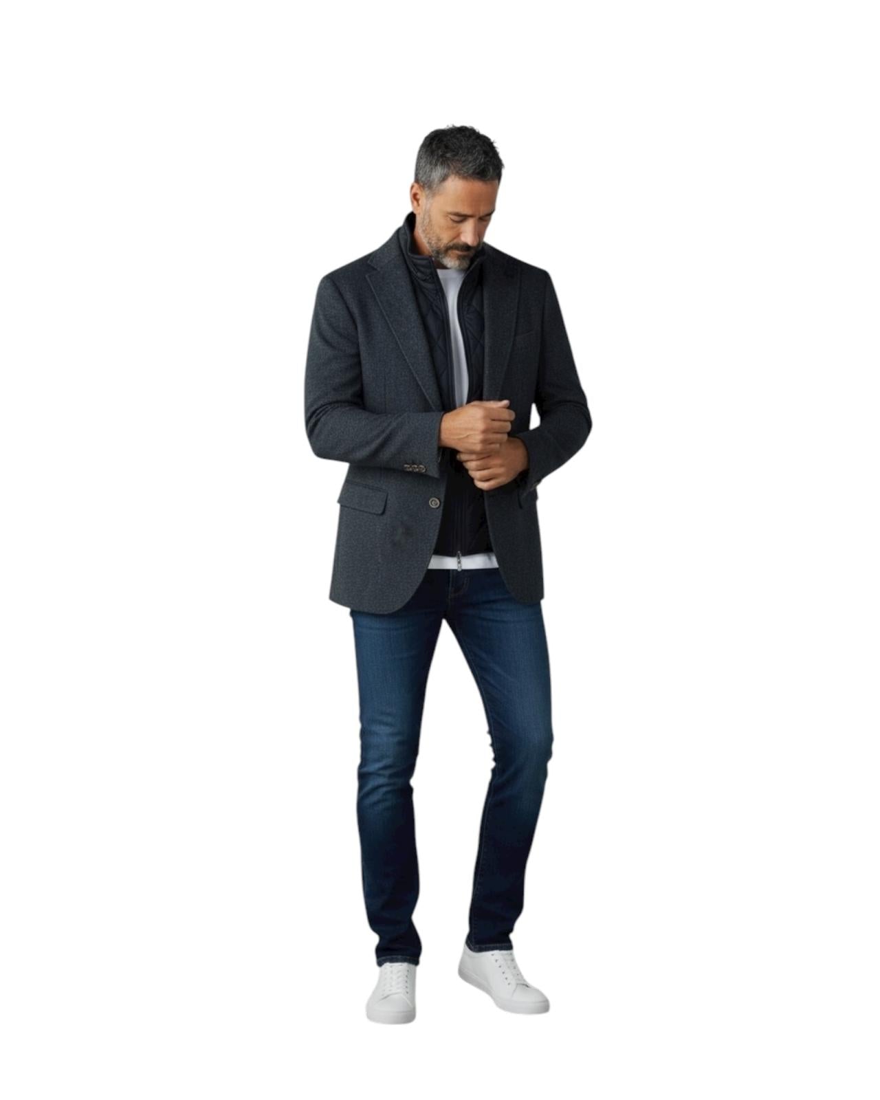 La Americana Trueno de Roberto Bassi, en color Azul Marino, es la combinación perfecta entre elegancia y confort para cualquier ocasión. Su patrón regular con el pecherín acolchado desmontable la convierten en una prenda versátil para vestir elegante en un evento selecto o con vaqueros en tus sesiones de tardeo. ¡Siéntete seguro y a la moda con esta americana de alta calidad!