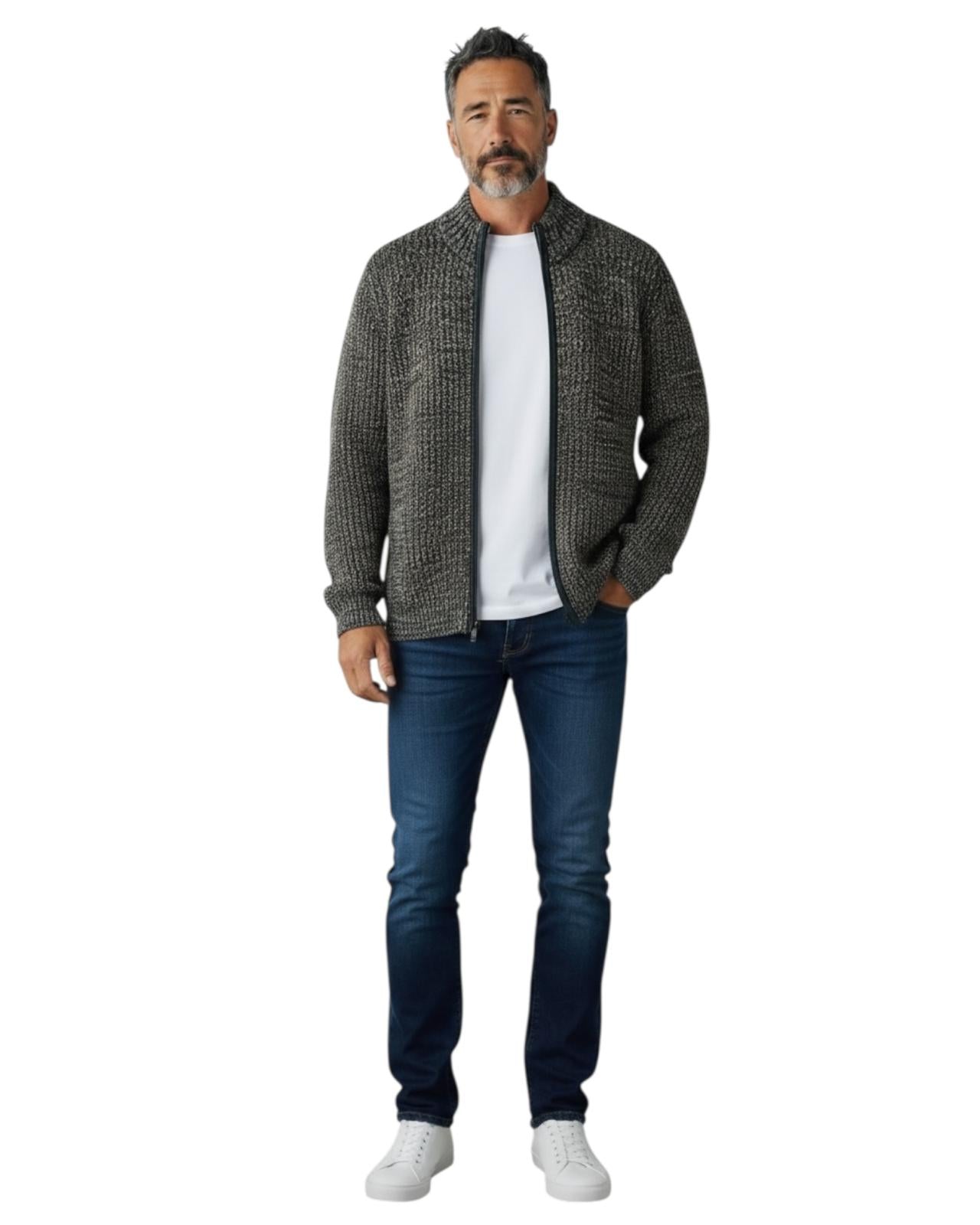 Este cardigan de Tome para hombre es una prenda esencial para quienes buscan comodidad, estilo y calidez en los meses fríos del año. Confeccionado en un punto grueso, mix de lana y acrílico de alta calidad, este cardigan destaca por su diseño moderno, su textura robusta y su cremallera frontal que aporta practicidad y versatilidad. Ideal para combinar con vaqueros o pantalones casual, ofrece un look actual y elegante para el día a día.